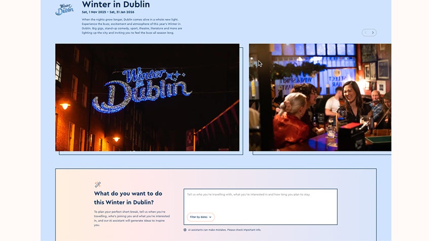 As part of a broader campaign, Fáilte Ireland introduced an AI planner to help people enjoy a more personalised search experience when on the Visit Dublin website.